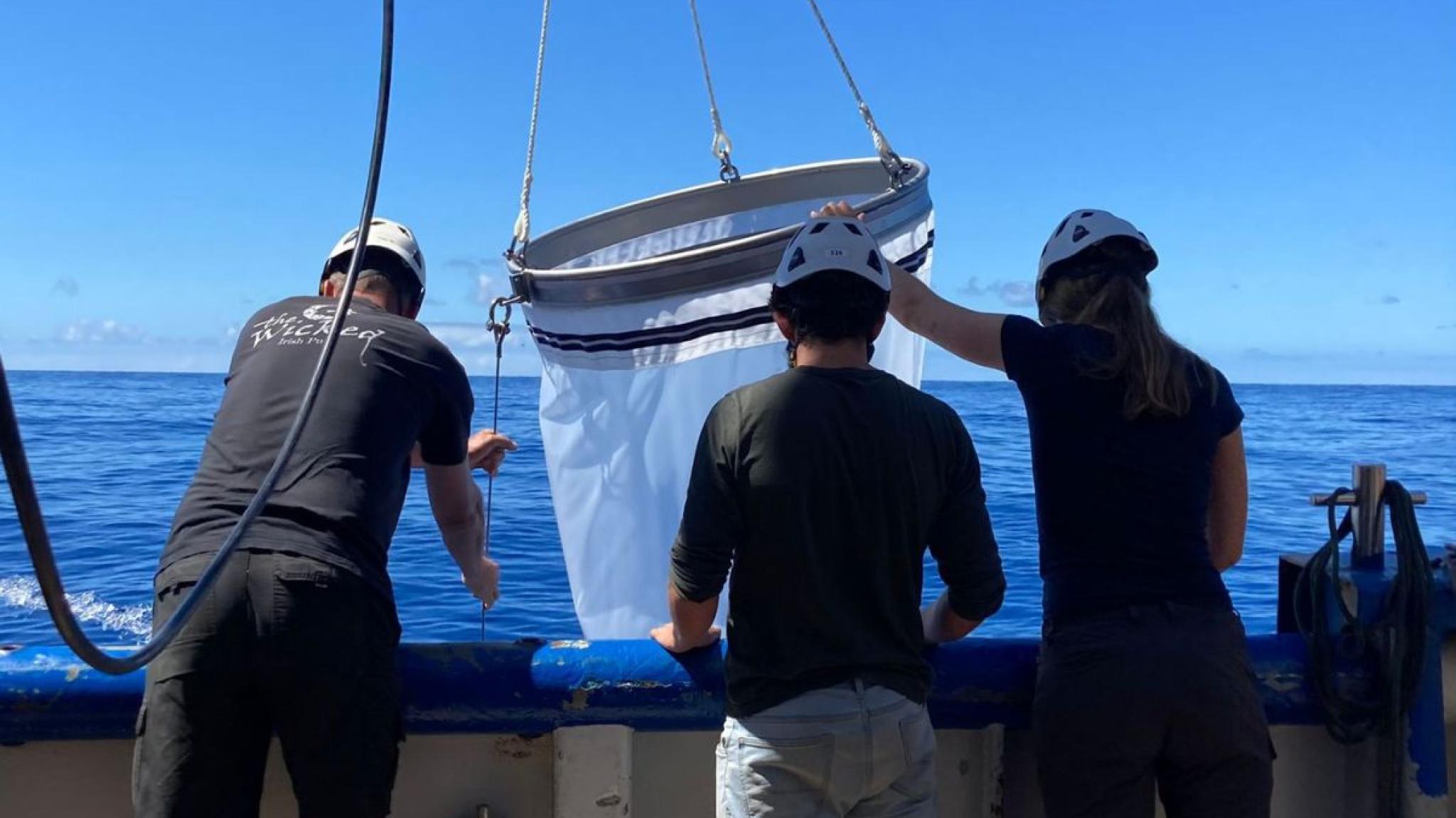 A plankton ringnet coming back to the surface after diving a 100 meters – Olivier Sulpis