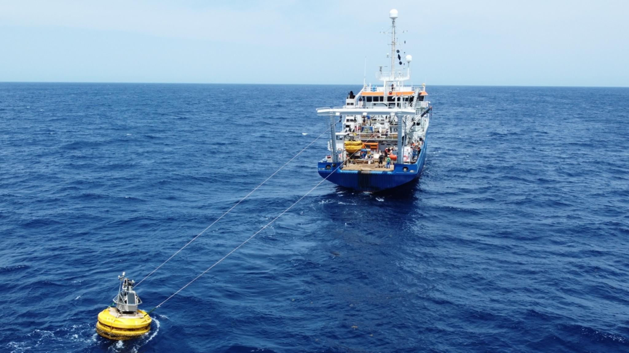 Since 2012, a trans-Atlantic array of instruments moored at five stations between the African west coast and the Caribbean has been monitoring Saharan dust and its marine-environmental effects. The easternmost of these stations is M1 at about 12°N/23°W and which consists of dust-collecting buoy Laura that samples the air and three moored sediment traps that intercept sediments (not only Saharan dust but also the remnants of plankton that lives in the ocean and largely depends on the supply of dust as their only source of nutrients) settling from the atmosphere, surface ocean to the deep.