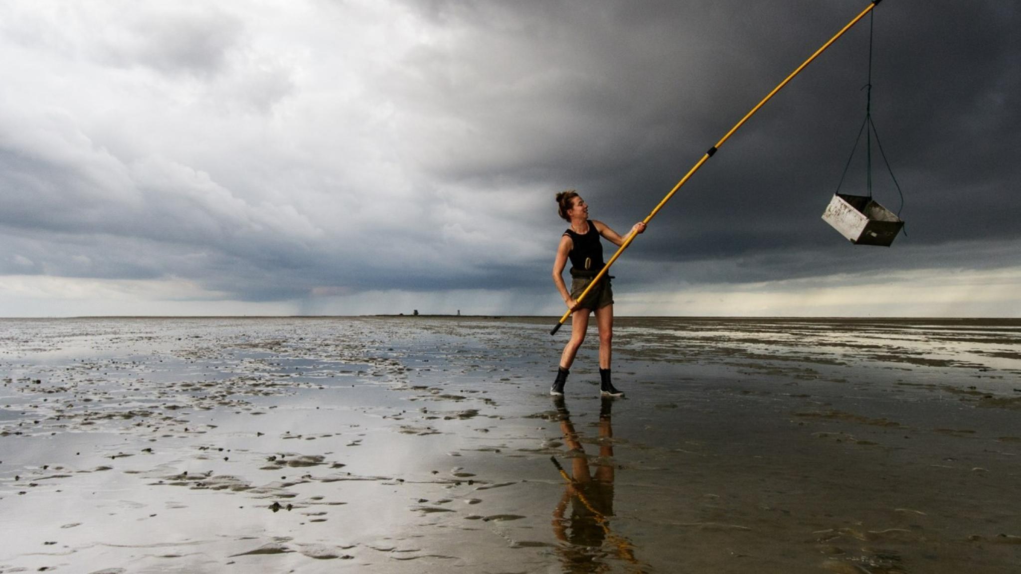 Emma preparing for observations on the mudflat. Credits: Sander Zondervan.