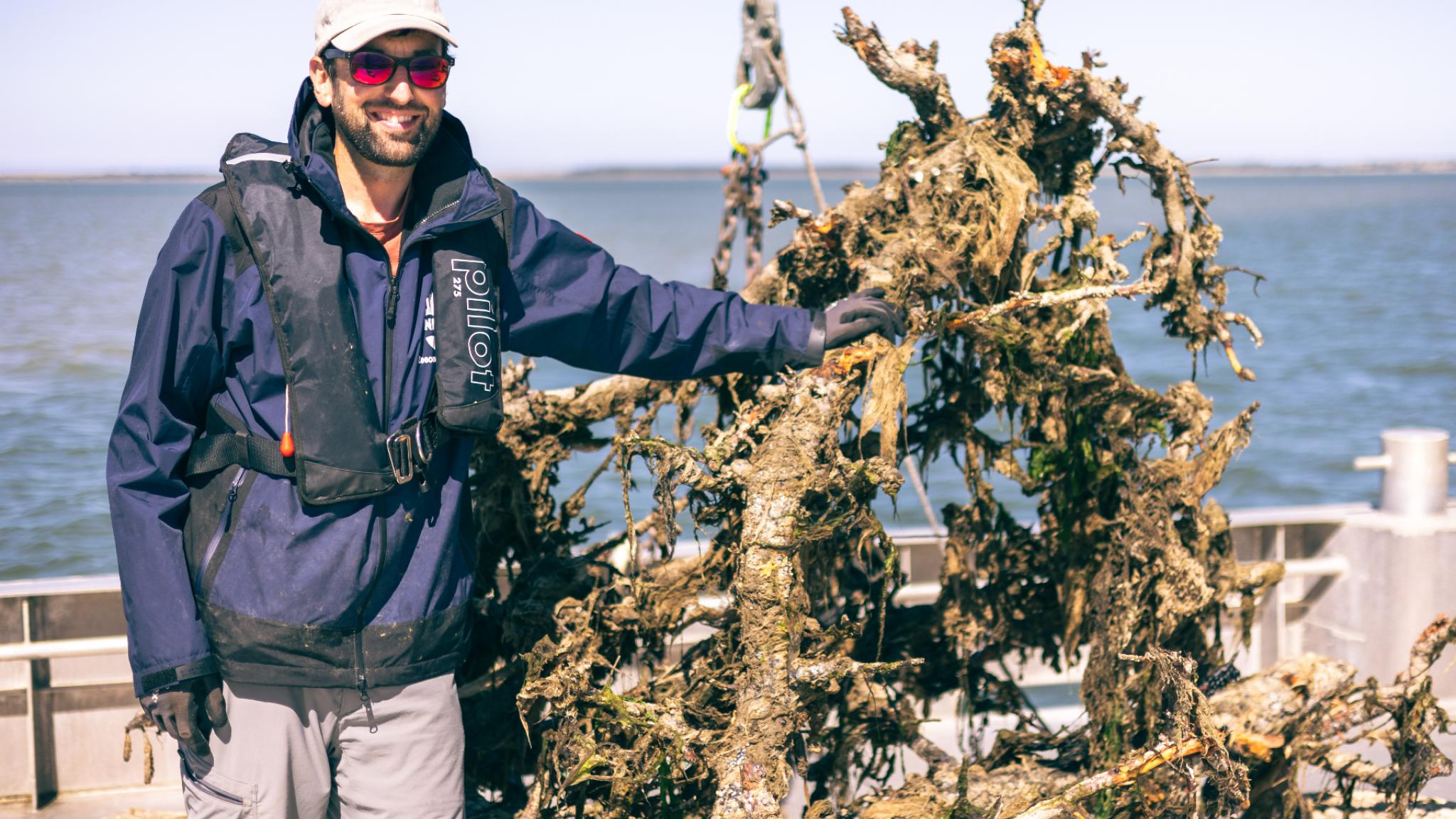 Met blokken beton aan de voet, verdwenen 192 bomen, omgebouwd tot 32 ‘kunstriffen’, in 2022 in de Waddenzee. Met behulp van camera’s op de betonnen voeten, met fuiken, en ook door enkele van die riffen op gezette tijden even naar boven te halen, controleren Dickson en collega’s hoeveel leven ze aantrekken. “En dat is gigantisch”, zegt hij onomwonden.